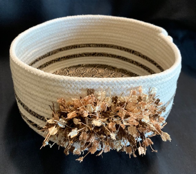 LaVerne Lewis is Founder/CEO of Women-SEW Global Foundation, a nonprofit that creates “global awareness and a response to women and girls, specifically immigrant and refugee, engaged in sewing collectives with intended outcomes of economic and leadership empowerment.” Early Inspirations – I learned to sew from my mother, on her old treadle sewing machine, making aprons and doll clothes. I was sewing and knitting by the age of 15, making most of my school clothes and my wedding dress. My mother and grandmother quilted by hand, but I was born to machine sew and quilt…and I love everything quilty, the colors, the fabric, the touch of fabric and the mesmerizing eye candy of threads in every shade, weight and size. I love mixing the medium of all kinds of fabric, not just cottons, but suedes, velvets and wools. For a while, I enjoyed making bed quilts for family and friends, but quickly discovered I could play by mixing the medium and have more fun with art quilts. For me, the fun is in the creating, the playing, the ‘trying new things’ and seeing how it all evolves. Sometimes, I will start a piece, hang it up and ponder; creativity is ongoing, fluid and expansive, never stagnant. Other times, I will finish a piece in one setting. I prefer not to do repetitive pieces, I may use the same pattern, like my zipper pouches, but I like to mix it up, change the colors, the fabric or add beads, charms or buttons. I also love making handbags of all shapes and sizes, such as free-form purses, tote bags, upcycle technique bags, and embroidery designed purses. Other thoughts – I love the colors of autumn and fall. Brown, oranges, greens, burgundy, and of course, burnt sienna; now there’s a color from the 60s in my box of crayons. My creations are created with emphasis on the color, fabric, thread, quality workmanship and the embellishment. Most of my ideas come from magazines, watching YouTube sewing and taking classes from professionals. I love quilt retreats, which is where I have learned an enormous amount of handy tips and time-saving ideas in fixing my goofs.