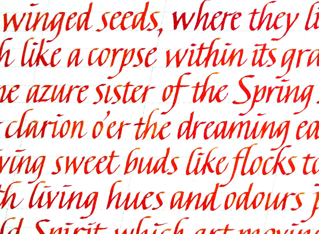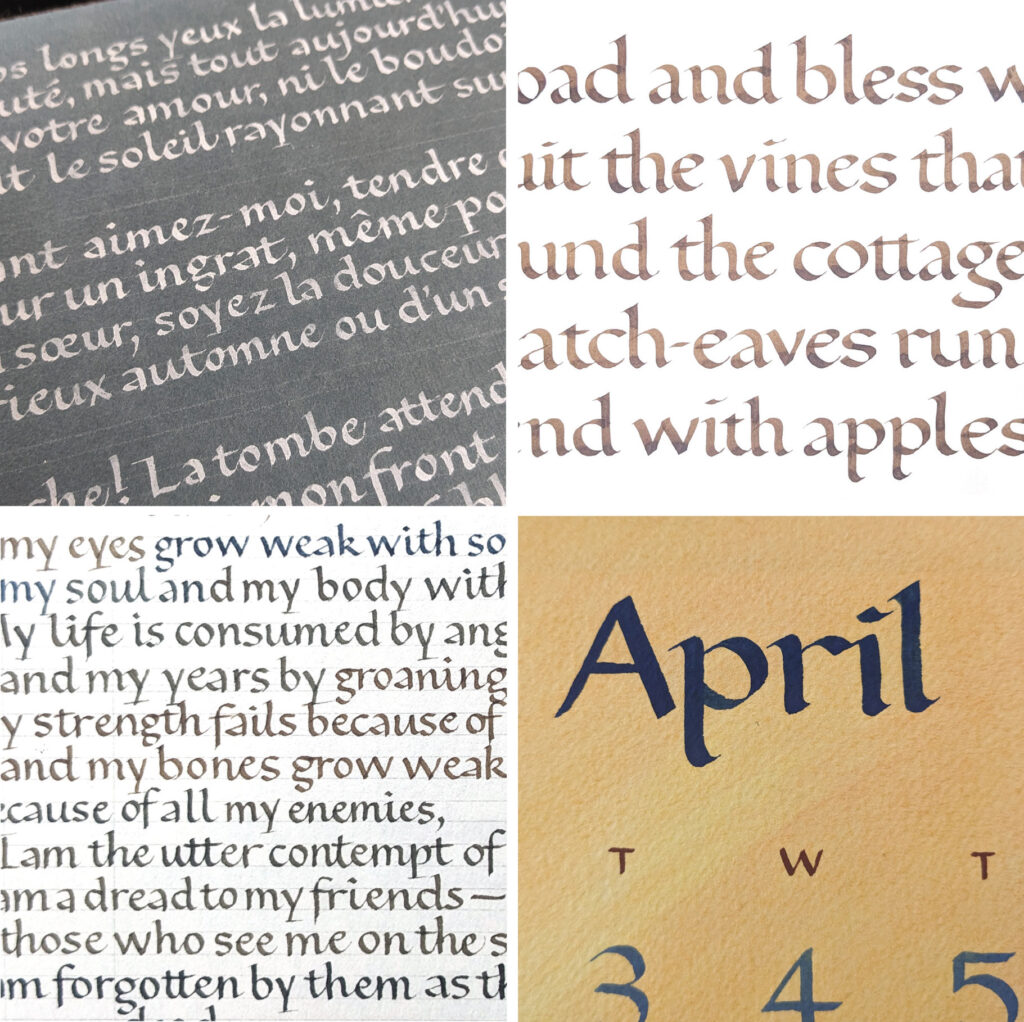 Stephanie Byrd has studied calligraphy intensively for 12 years with the local legends Carol DuBosch and Christine Colasurdo as well as taking classes and workshops taught by many other expert calligraphers from all over the world. She is a member of the Portland Society for Calligraphy and San Francisco’s Friends of Calligraphy and has frequently exhibited her award-winning work in Portland and Salem. Stephanie has bachelor’s degrees in French and English and works as a freelance graphic designer. She enjoys reading, gardening, riding her bike, and volunteering with local organizations such as the calligraphy society and her sons’ public schools.
