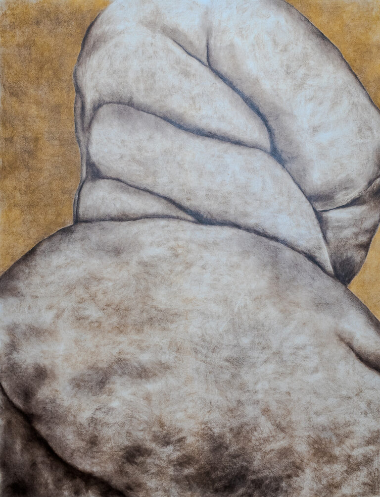 Ami Maki’s Obese Landscapes series consists of 40 large-scale paintings made with charcoal and acrylic on canvas, each measuring 7 x 5 feet. Maki celebrates the beauty of bodies that exist and have always existed outside of what the Body Mass Index (BMI) defines as fit. “The term ‘obese’ has been weaponized to perpetuate discrimination and shape perceptions of worth, leading to the marginalization of those whose bodies do not fit within narrow societal standards,” she says. Her work explores the ways in which our bodies not only resemble the beauty of nature but are part of it.
